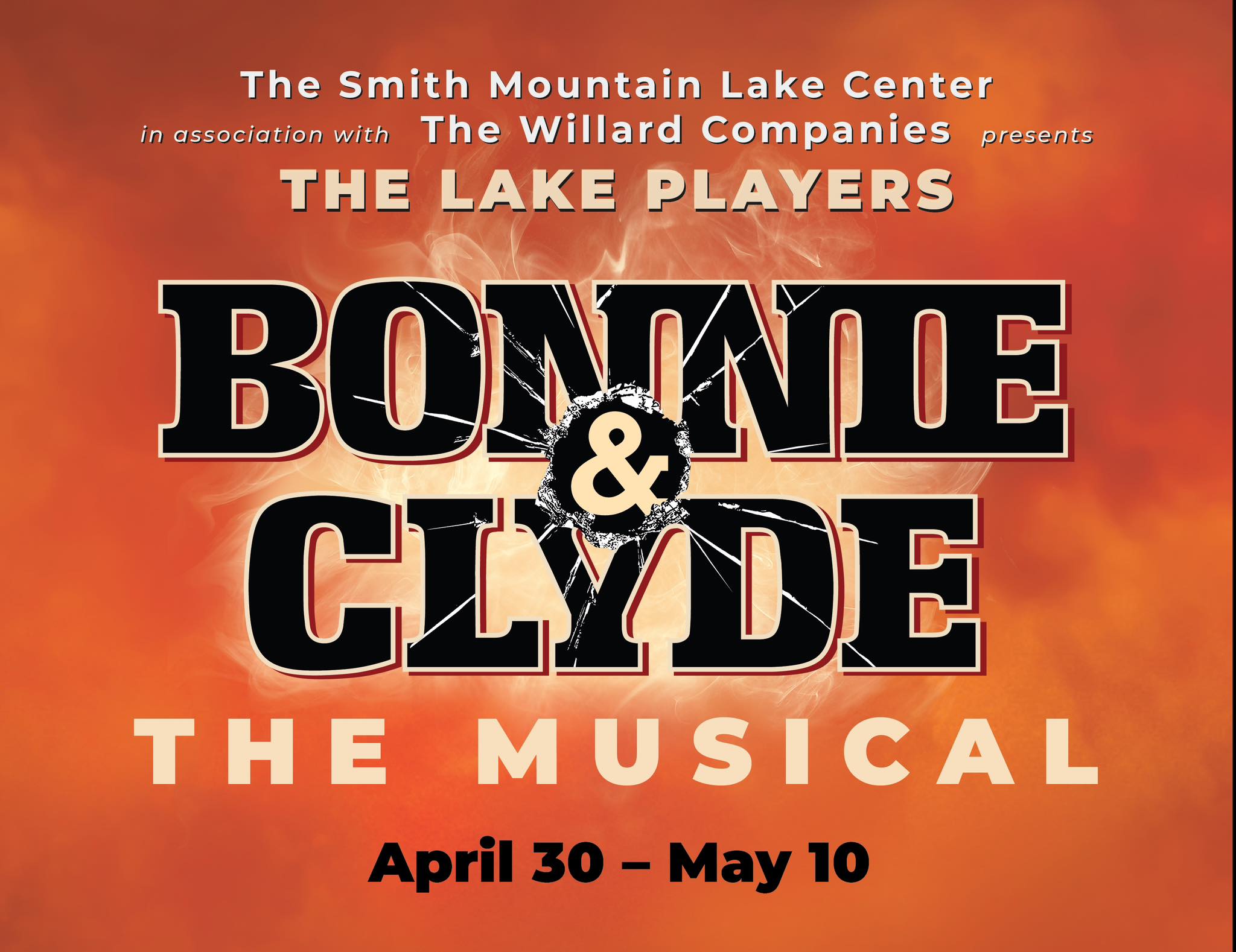 The Lake Players, in association with the Smith Mountain Lake Center and The Willard Companies, will present Bonnie & Clyde: The Musical from April 30 through May 10, 2026.